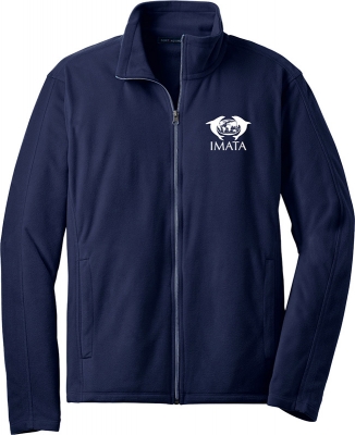 Navy microfleece, zip-up jacket with white IMATA logo on the left chest